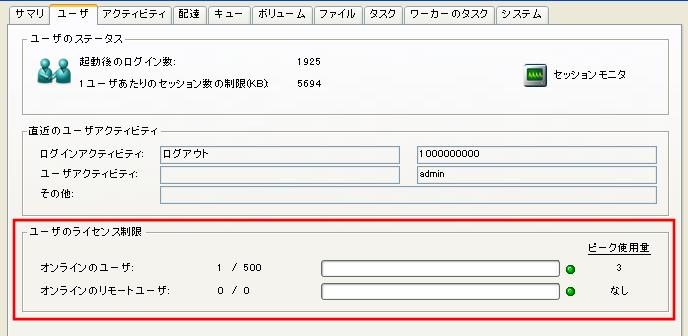 ユーザセッションおよびリモートユーザセッションのピーク時の使用状況がサーバによって追跡され、[サーバモニタ]の[ユーザ]タブに表示されるようになりました。