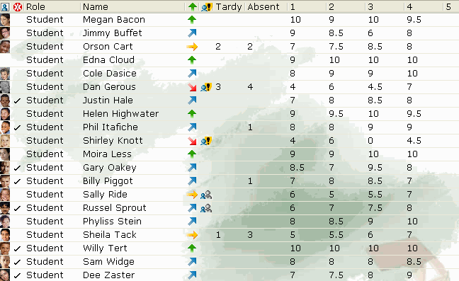The roster will tell you, at a glance, which students are succeeding and which are not. It will tell you which students are falling behind, not participating, need more advanced work, or need extra help. Furthermore, you can use the information in the roster to prepare report cards and prepare for parent/teacher meetings.